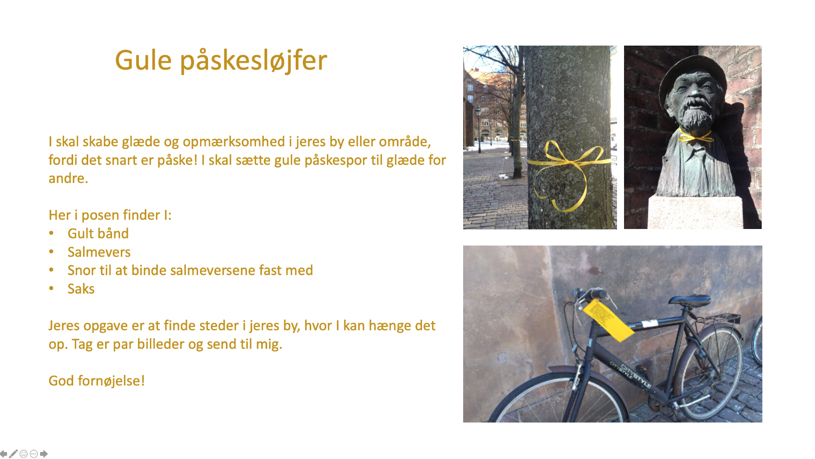 - Påskesalmevers, som du printer ud på gult papir, laminerer og trykker et hul i til at sætte snor igennem - klik her
